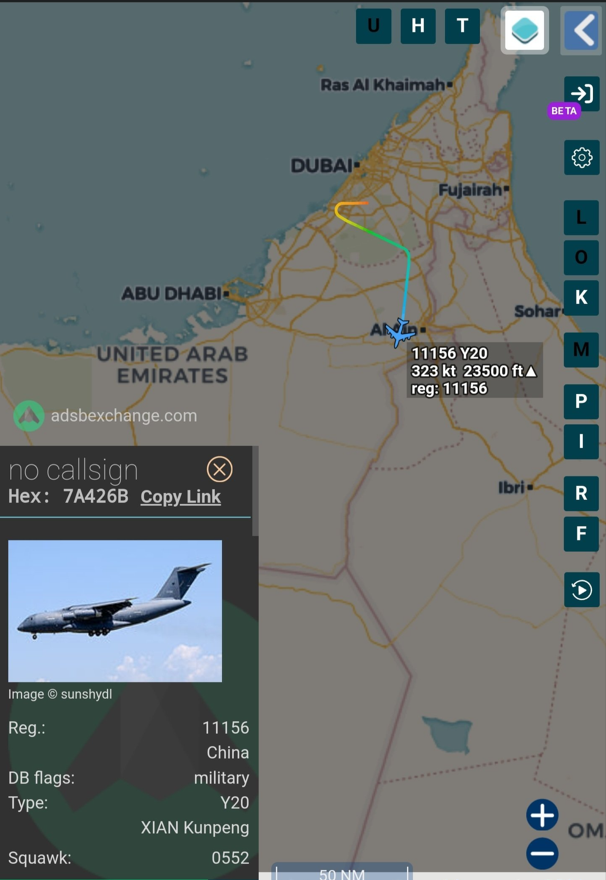 据24小时飞行雷达网(Flightradar24)等报道,5架中国空军的运-20大型运输机,编号7A448F、7A4403、7A426B、7A4445、7A4444,与1架空警-500预警机,编号7A429A,经停迪拜以后,飞往埃及,并已经抵达。