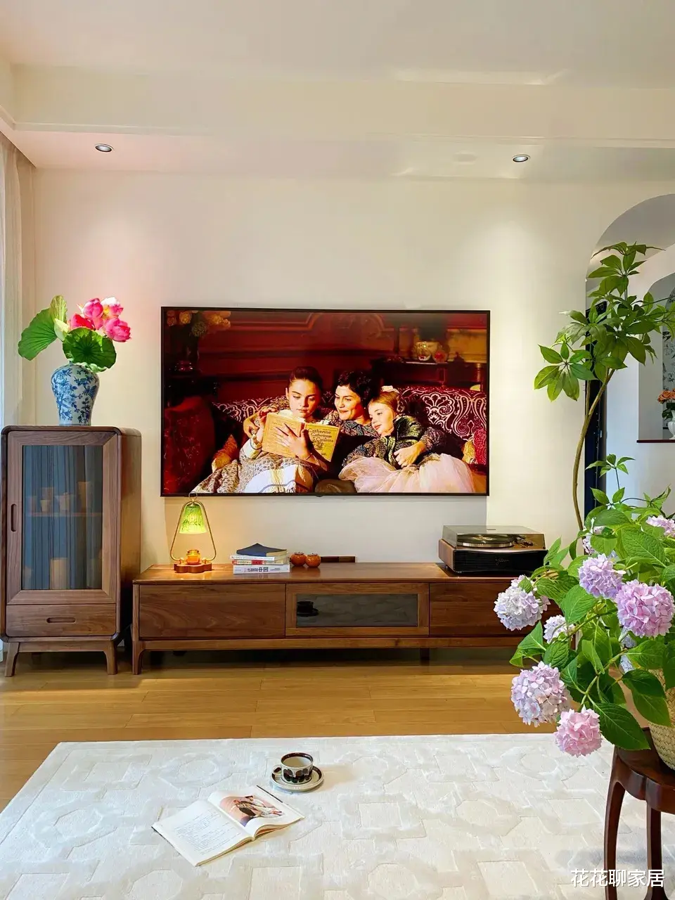 电视机巧妙地悬挂在墙面上,这种设计不仅节省了宝贵的地面空间,还让活动区域显得更加开阔。