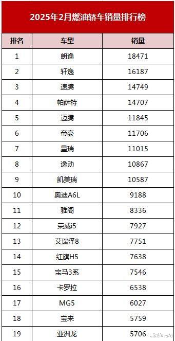 2025年的车市开局,总有些出人意料的故事。2月燃油轿车销量排行榜上,大众品牌的强势表现让人侧目。朗逸、速腾、帕萨特、迈腾纷纷上榜,稳居前五。但问题是,这样的“赢麻了”到底能持续多久?市场的天平会向谁倾斜?