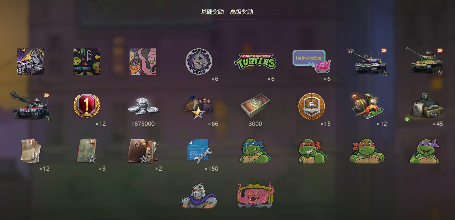 战斗通行证作为游戏内最重要的赛季性活动之一,其规则想必大家都比较熟悉了,无非就是推进阶段拿奖励,越努力收获也就越多。第13赛季既然以“探索《忍者神龟》传奇”为主题,最引人瞩目的地方自然是那些联动物品,接下来我会一一介绍。