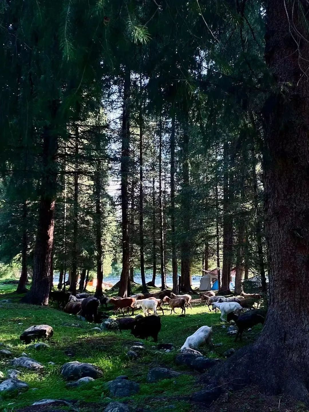放眼望去,是一望无际的森林。这里森林覆盖率极高,主要树种为雪岭云杉。云杉高大挺拔,树干笔直粗壮,平均高度可达30 - 40米,像坚守岗位的战士,在漫长岁月里始终如一地坚守着这片土地。