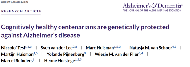 来自代尔夫特理工大学的研究人员根据最新的AD GWAS,探讨了SNP对长期认知健康的综合影响。通过对比健康百岁老人的基因分析,他们确认了一组具有保护认知作用的SNP,功能主要集中在免疫和内溶酶体系统,并且这些SNP在健康百岁老人中的保护效应要高于AD患者或者年龄匹配的对照组。