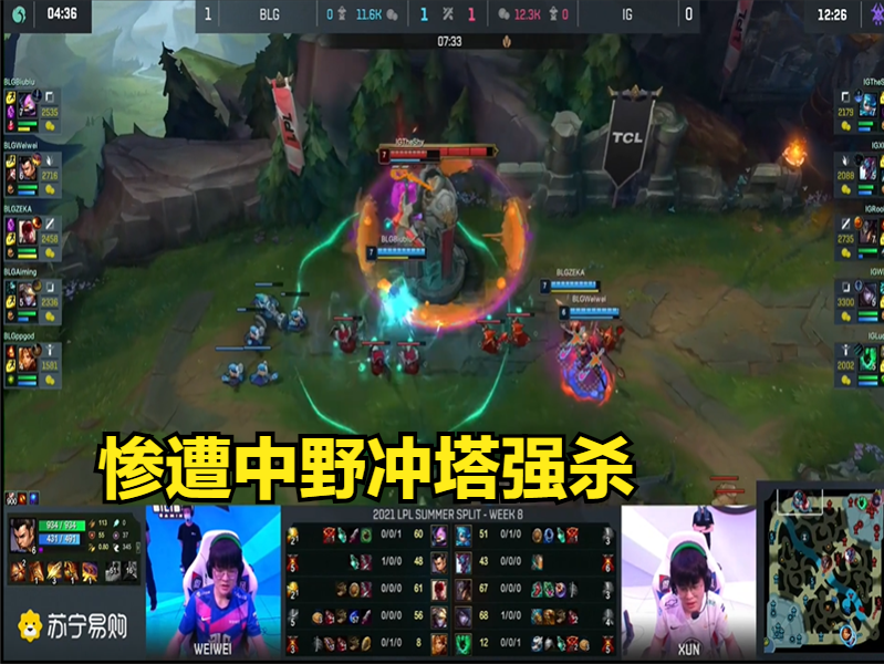 七分钟赵信故技重施,偷掉了Xun的红之后点果实偷石甲虫,随后配合游走的盲僧上路三包一军训shy哥,shy哥上路塔线再次阵亡,发育陷入巨大劣势,而shy哥被军训期间,IG其余人围绕下半地图也没能挽回损失,只是控下第一条小龙。第一条峡谷先锋则是由BLG拿下,随后放在上路连推一二塔,使得BLG中野获得大量经济滚起雪球。最后雪球越滚越大拿下IG。