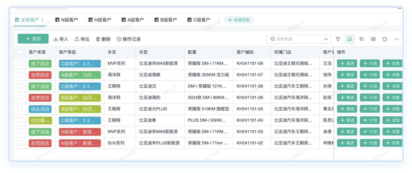 以前客户来了,加个微信,聊两句就没下文了。现在系统里直接记录客户信息、购车意向、跟进进度,谁负责、约了啥时候回访,一目了然。