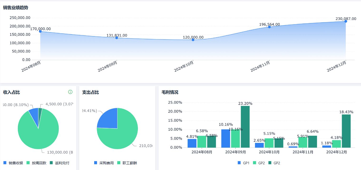 6. 业绩报表随时查老板最关心的数据,以前整理起来太费劲。现在系统自动生成销售数据、库存周转、利润情况,一键导出报表,开会时直接展示,数据说话,老板也服气。