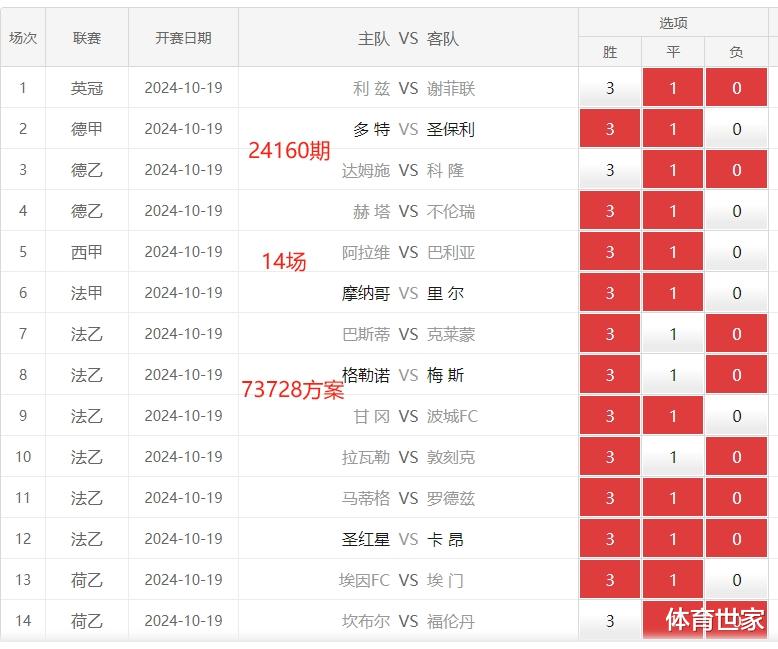24160期=足球胜负彩14场=大范围: