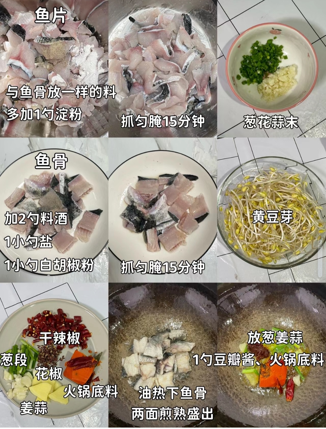 - 配角:黄豆芽一把,清脆可口,完美衬托鱼的鲜美;