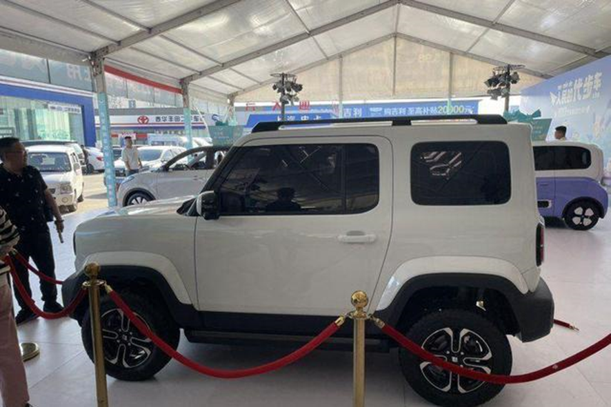 车身侧面双门紧凑方正显俏皮,宽轮眉、侧裙踏板及行李架增色,更显精致灵活。但轮胎规格偏小,与车身搭配不够协调。