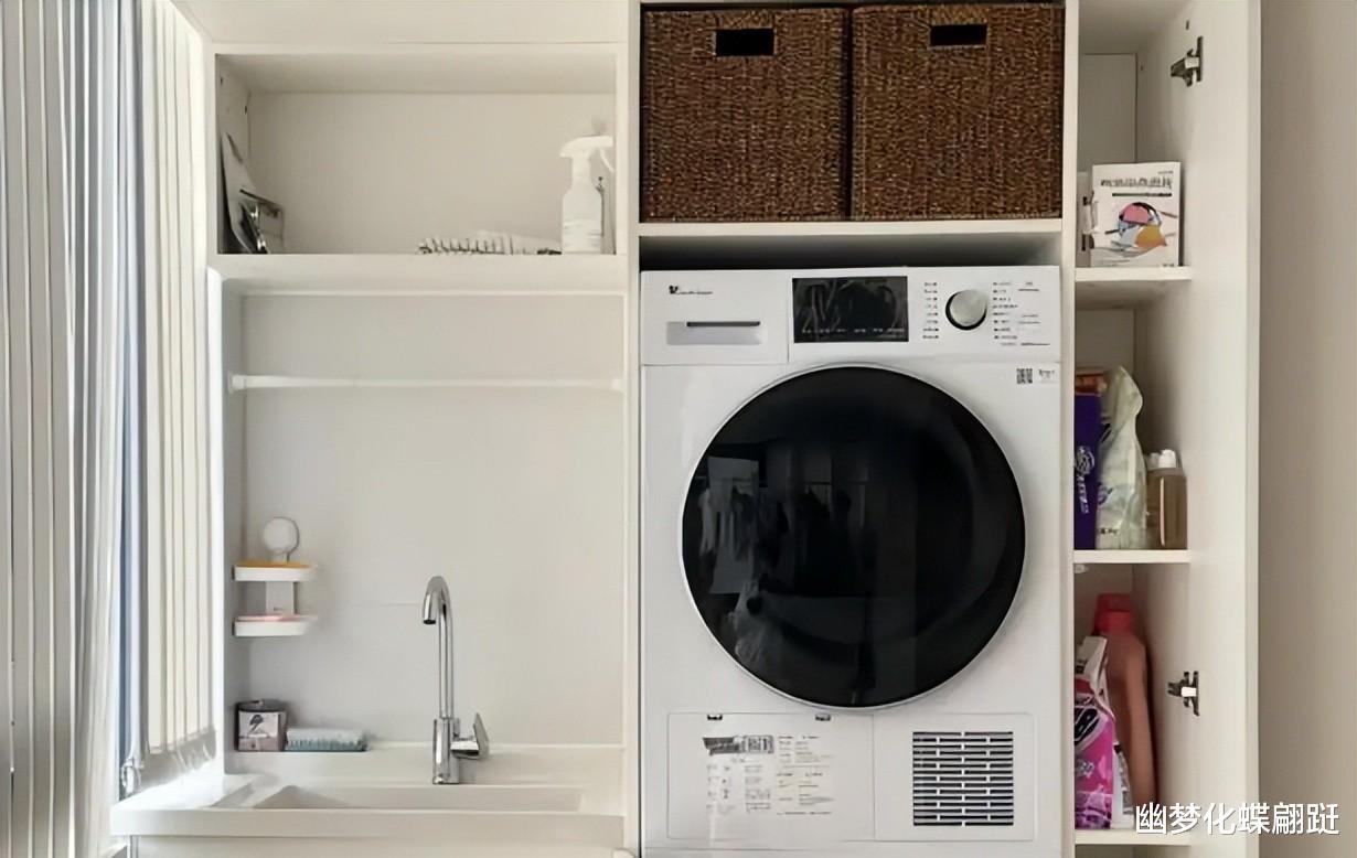 阳台的洗衣机旁总是堆满洗衣液、衣架和各种杂物,看着就让人头疼。老公的洗衣柜设计让我彻底告别了这种烦恼。他直接采用了步入式设计,配上“冰箱门”式的柜门,外观简洁大气。柜内空间规划得井井有条,洗衣机上方设置了晾晒区,湿衣服可以在这里直接晾干,避免了满屋子都是水渍。