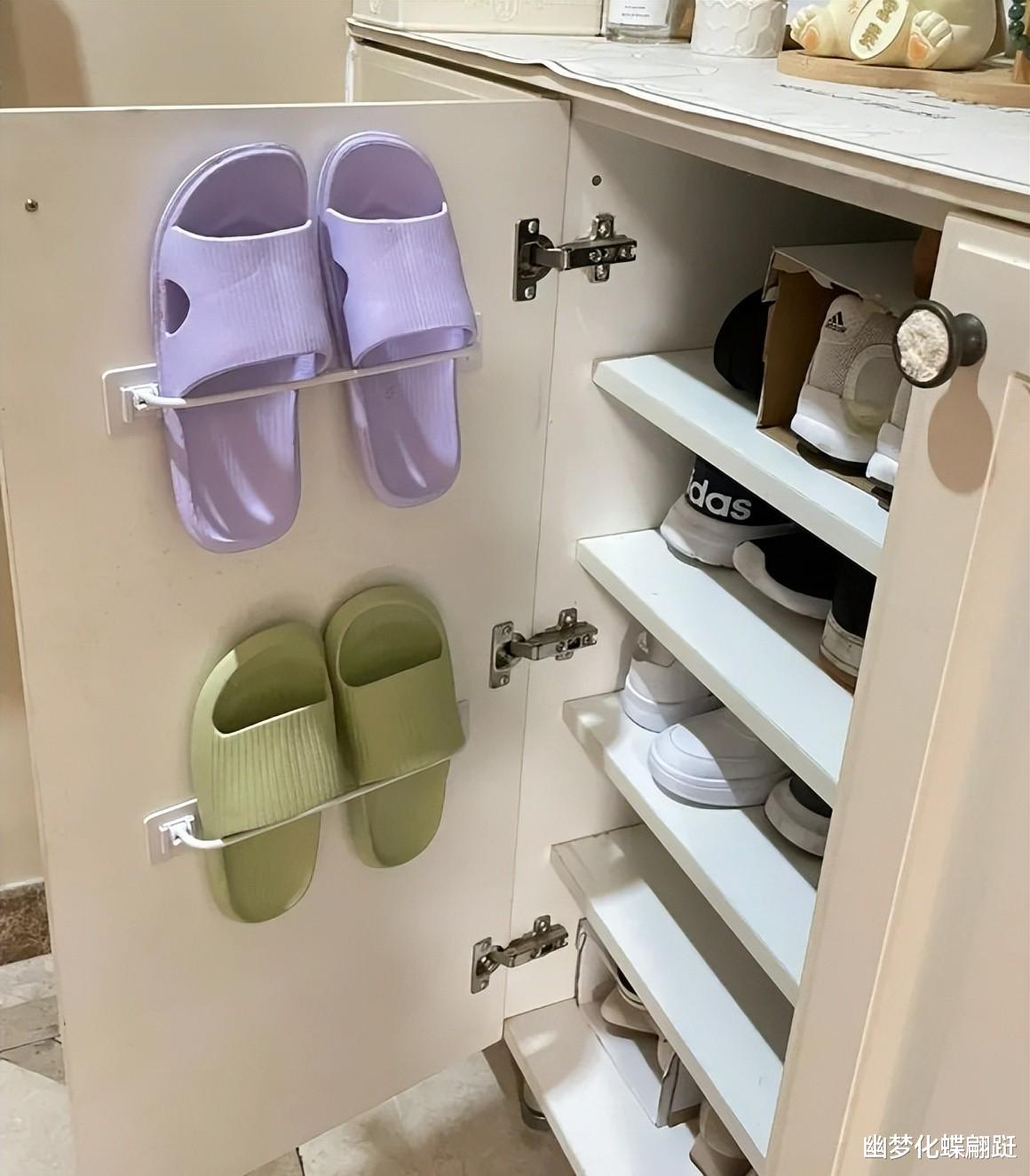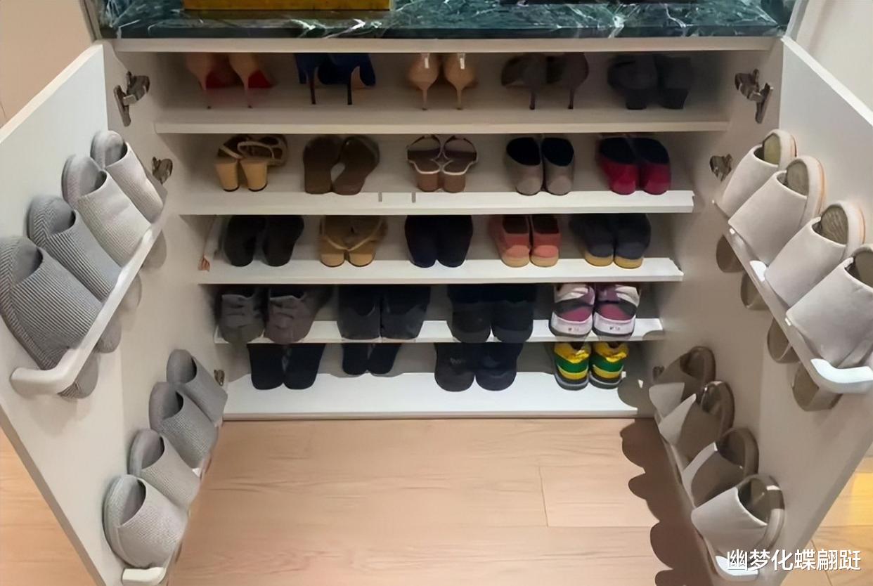 鞋柜可能是每个家庭都头疼的问题,尤其是玄关空间不足的时候。老公的做法是把鞋柜的层板向内缩进1015厘米,同时在柜门上安装了塑料鞋架。这样一来,不仅能多放好几双鞋,拿鞋也特别方便。