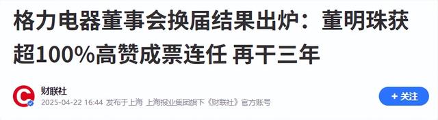 财联社2025.4.22——格力电器董事会换届结果出炉:董明珠获超100%高赞成票连任 再干三年