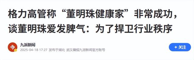 九派新闻2025.4.18——格力高管称“董明珠健康家”非常成功,谈董明珠爱发脾气:为了捍卫行业秩序