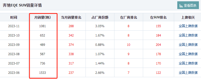 以近期销量为例,2023年6月-11月,只有6月和11月销量超过了1000辆。另外,2023年年初,甚至有不少媒体报道,EQ系列将在2024年年底被放弃。