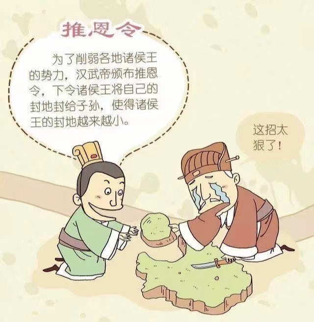 推恩令能成功离不开文景两代的削藩,尤其是景帝打赢了七国之乱,不把诸侯王打一顿他们根本不鸟你。假如换成汉初时的诸侯王,齐国七十三城,楚国三十六成,个个都是庞然大物,皇帝敢削藩这些王就敢直接把你从皇位上掀下来