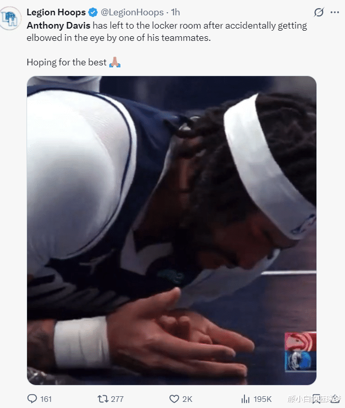 首节浓眉8分钟,7中4,三分2中1,罚球4中4拿到13分6篮板1助攻1盖帽攻防一体,不过他被队友加福德误伤眼睛进入更衣室,第二节还剩2分钟浓眉再度登场拿到2分,半场浓眉15分钟8中5拿到15分6篮板1助攻1盖帽。