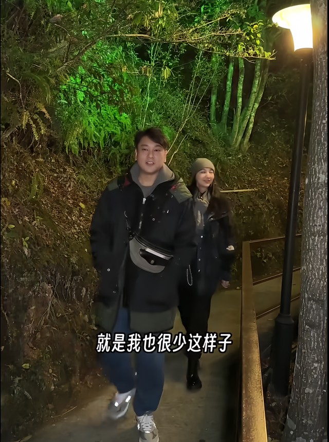 只见夫妻二人全都包裹严实,在暖洋洋的春天却穿着厚重的棉服,韩雯雯还带着厚实的围巾和线圈帽,俗话说海拔升高100米,气温下降约0.6°,从夫妻俩的穿搭看,大概是山上的温度要比市区低不少。