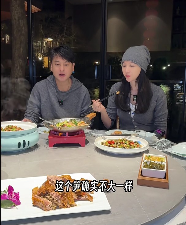 夫妻俩刚走进包间就迫不及待的拿起菜单点了菜,在等菜上桌的间隙将厚重的羽绒服脱下,主要也是为了给观众呈现出更好的视觉体验。