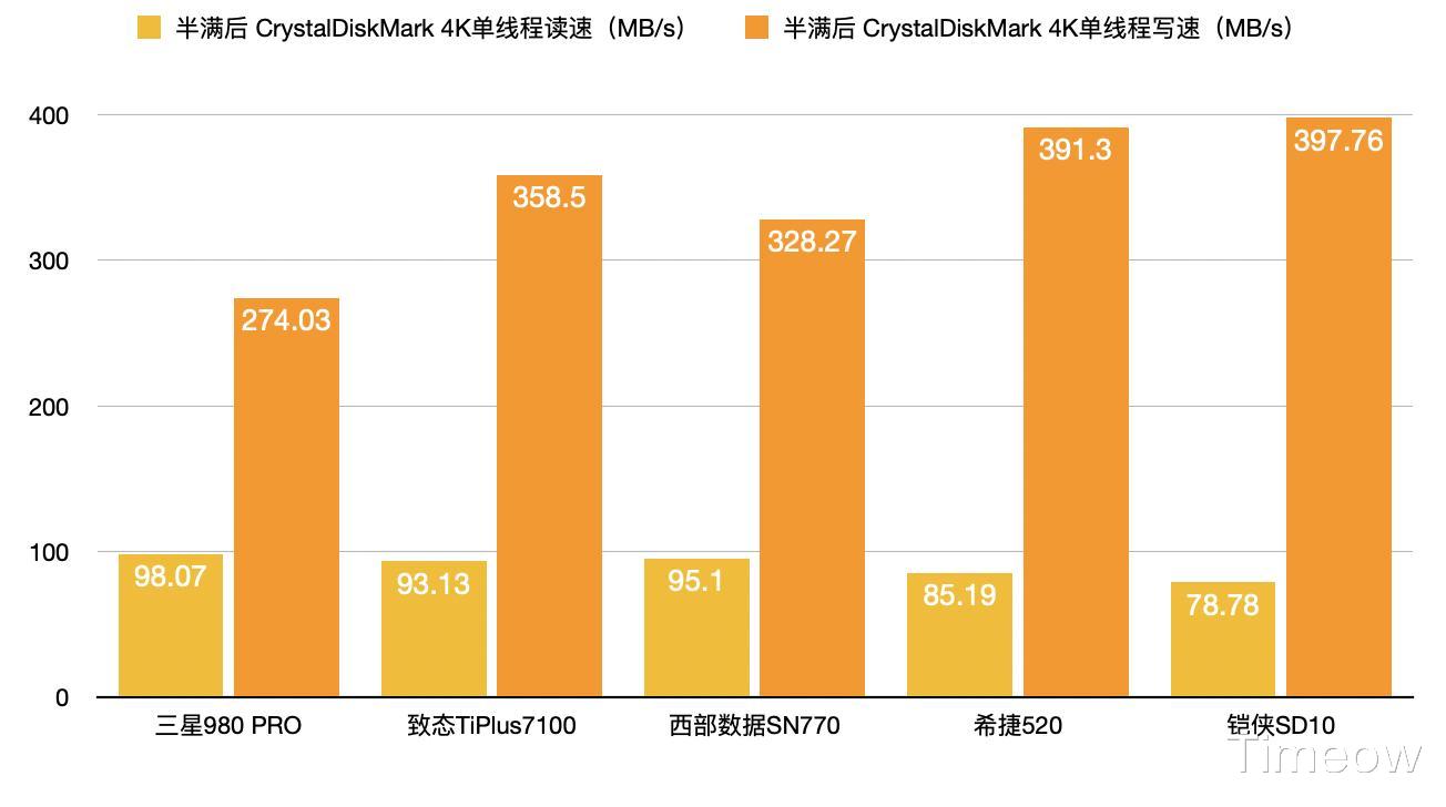 单线程随机4K写速最快的是铠侠SD10。