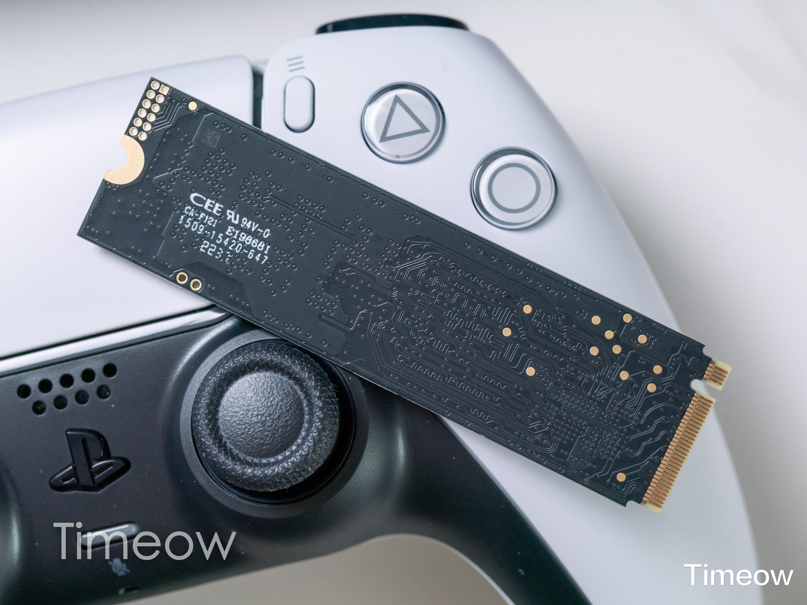 背面直接在PCB上贴了一块散热贴,看样子是给闪存颗粒散热的,但贴在这一面确实……效果不大。