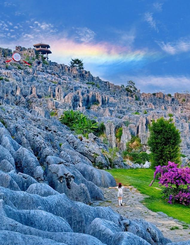 来到兴文石海的大门,我被眼前的景象所震撼。纵横交错的石阵,宛如一座巨大的迷宫,行人步道迂回曲折,高高低低,每一步都充满了未知和惊喜。随便一拍,都是充满“异域星球”感的大片。