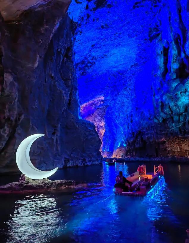 探洞之旅的高潮部分莫过于乘船过暗河了。乘坐一艘小船,在漆黑的洞穴中穿行,耳边是潺潺的水声,眼前是若隐若现的光影。
