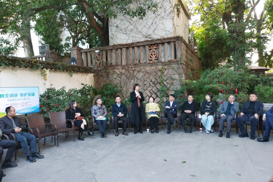 为深入学习贯彻习近平总书记关于民营经济发展的重要讲话和重要指示精神,1月13日,由民建福建省委会调研处、民建省直工委会、民建平潭基层委员会、福州大学民建经济研究院、思源·闽善公益基金联合主办的“民企调研 围炉茶话”周末品茗论道沙龙在福州华侨新村芷园举办。全国政协委员、民建中央常委、民建福建省委会主委吴志明主持本次沙龙座谈,民建福建省委会秘书长潘丽娜参加座谈会。