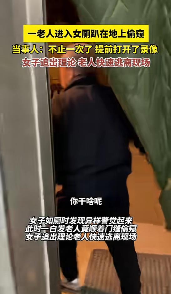 一个白发苍苍的老头,居然趴在地上偷窥女厕所!这是真实发生在吉林长春的一幕。这老头也不知道脑子里哪根弦搭错了,屡次三番干这种不要脸的事儿。