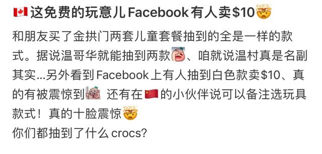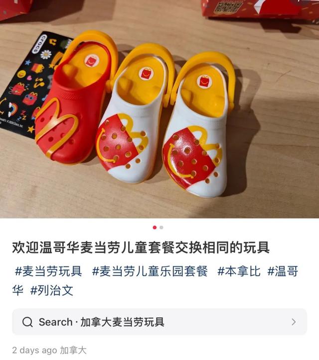 加拿大这次的拖鞋挂饰一共出了 10 款,5 款白色系,5 款 红色系,虽然放在儿童套餐的玩具里,但很多人都直接 2 加元单独拿下,尽管有些店不支持单卖。