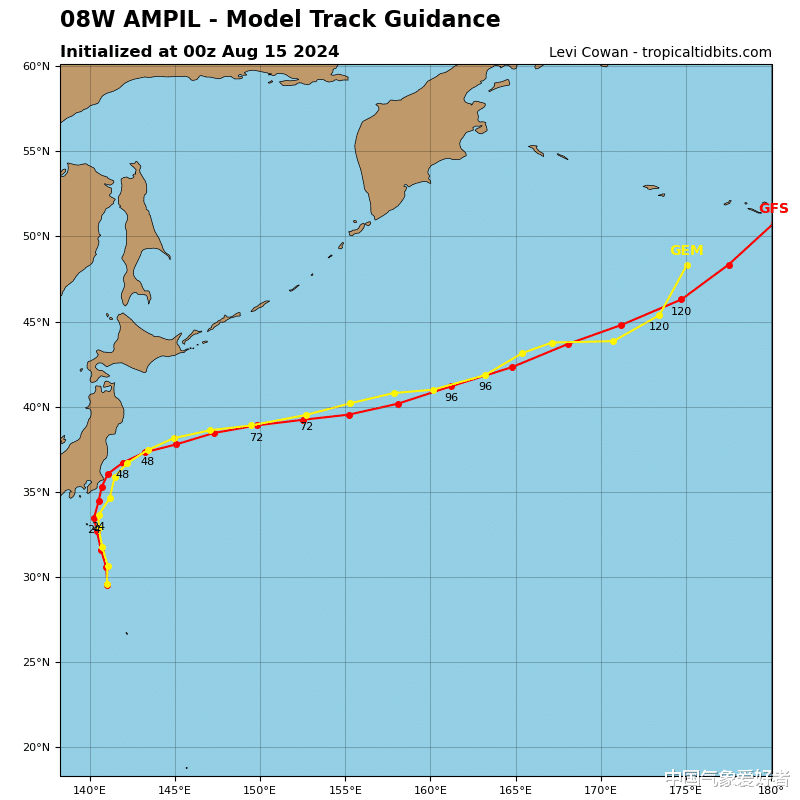 根据中央气象台的最新监测数据,安比的中心位置已经接近日本东京南偏东方向约660公里的洋面,今天已经是12级的台风级,预计将以每小时20公里左右的速度向偏北方向移动,强度逐渐增强。随着安比逼近日本本州岛东南洋面,虽然目前中央气象台的预报中认为,直接登陆日本的可能性不大,但接近日本关东地区时,其威力已经不容小觑。