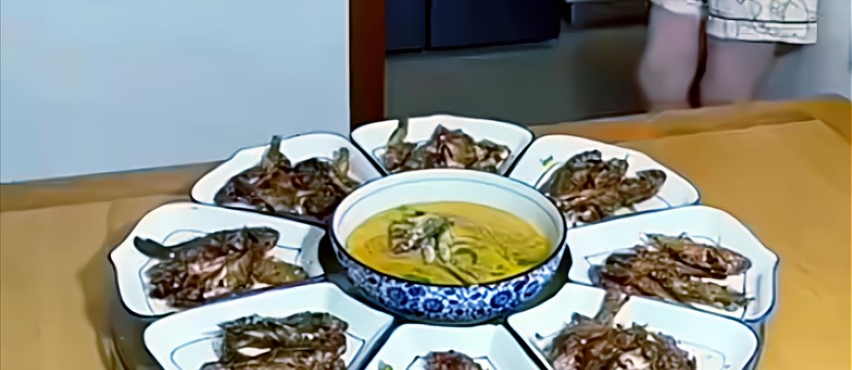 不得不说,妻子准备的确是一桌菜还真不错,并且还是全鱼宴。整个桌子上一共有9菜,分别是炸鱼和鱼汤,应该是天天吃鱼吃腻了,男子怎么也下不筷子,而妻子则站在一旁抱着手静静地看着他。