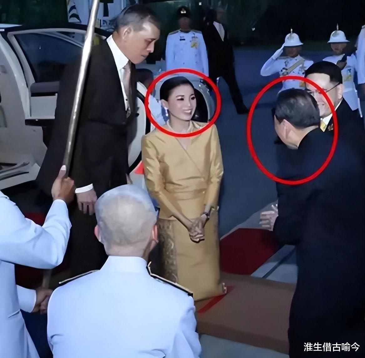不丹4王母到泰国出访后,迎接她的人,就给她行了一个泰式跪拜礼。