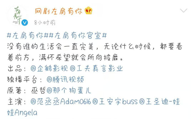《撒野》电视剧如今已经官宣了,其剧名已经发生了改变,变成了《左肩有你》。有人说这是一部双男主的电视剧,但是说句老实话,单单看这部电视剧的剧名,无论怎么看都不像双男主电视剧。