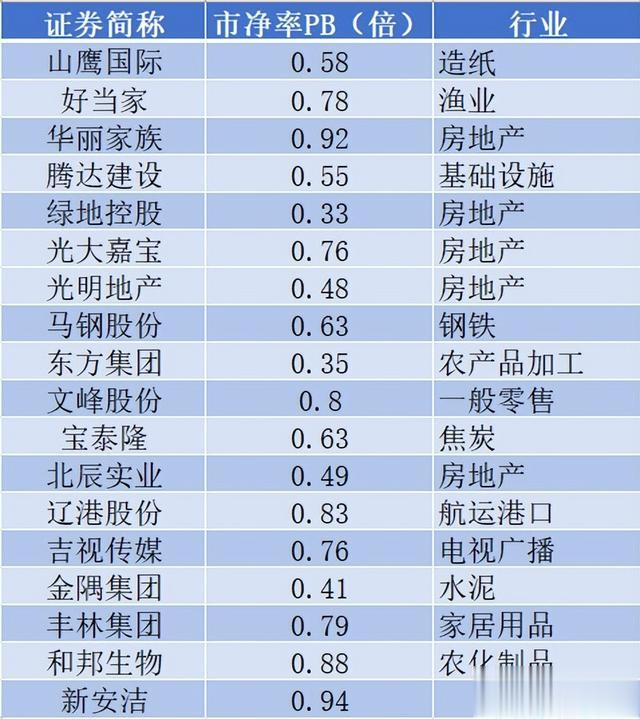 所以今天主要梳理整理出A股目前低估值、破净股名单