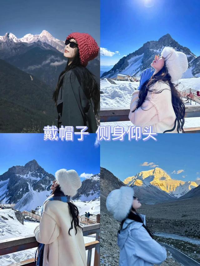 戴上一顶温暖的帽子,以远处的山峰为背景,侧身站在画面的一侧,45度抬起头,保持三分法构图,这样的拍摄方法,能在突出人物的同时也能强调远处壮丽的山峰,姿势也优雅又不失自然,能够做到轻松拍出人生照片。