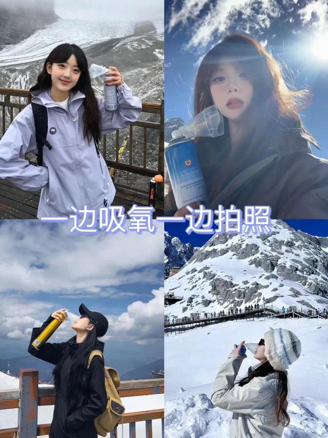 身处高海拔的山峰上,氧气瓶是必不可少的装备,拍摄登山照的时候,可以利用氧气瓶为道具,放在脸边遮脸显瘦,或是一边吸氧一边拍照,不显刻意的同时,也能表现出面对困难时不屈不挠的精神。
