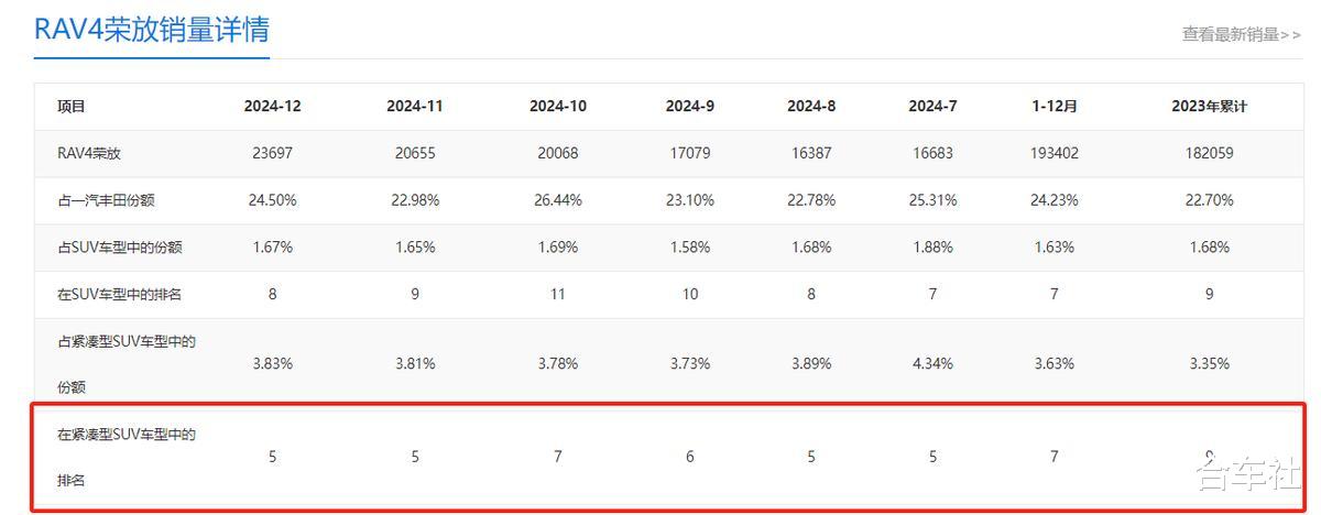 作为城市SUV先驱,丰田RAV4荣放自1994年诞生以来,就一直备受消费者喜爱,2017年到2022年,更是连续六年荣获全球SUV销冠。只不过随着新能源攻势的加强,产品力的多年不变,它的销冠已不再稳定。