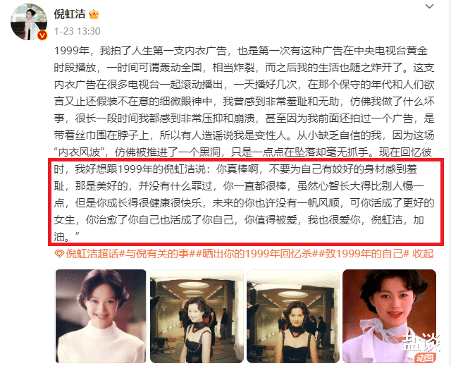 2025年1月23日,倪虹洁发了一条微博和自己和解。我想,这是她这些年走出来的勇气、闯出来的底气,和悟出来的真理。
