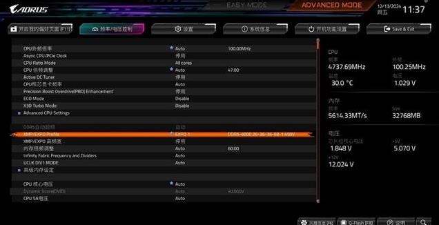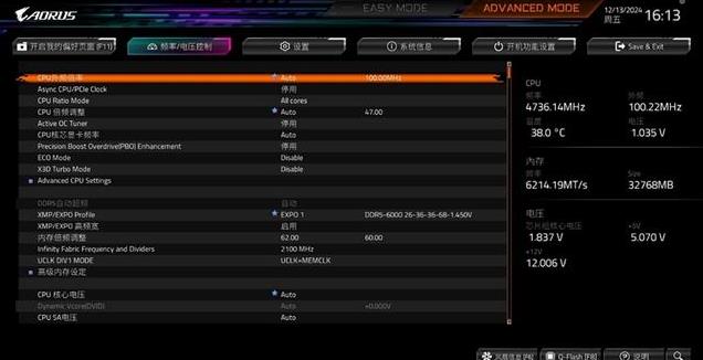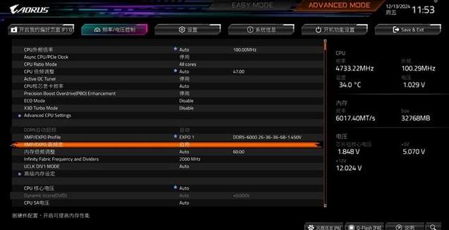 接下来再在技嘉主板中打开EXPO高频宽设置,进一步释放内存性能。