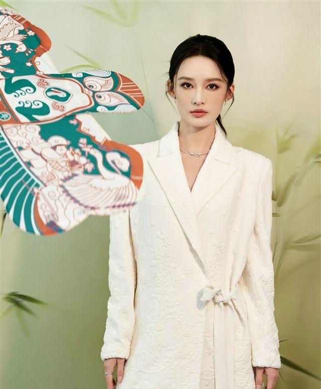 白色西装套装完美勾勒出她高挑的身材,简约风格中透着时尚感,完全展现了她优雅而又不失魅力的气质。
