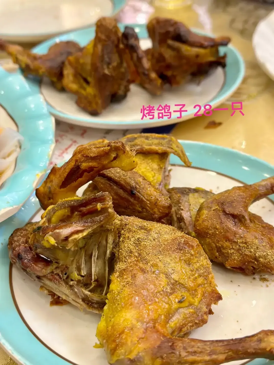 我是十一点多去的博览园,跟河南妹子逛到4点才去吃午饭,各种拍。午餐吃的烤鸽子,一只28元,绿豆面一份10元,分量足,味道不错,服务员小姐姐还送了我们一份凉粉。烤鸽子挺好吃,很酥脆,虽然肉不是很多。感觉新疆很爱吃鸽子,尤其是和田地区和喀什地区。当地人都说:没有一只鸽子,能活着飞出新疆。