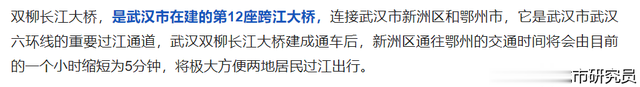 其中,双柳长江大桥和汉南长江大桥是武汉六环线重要的过江通道。