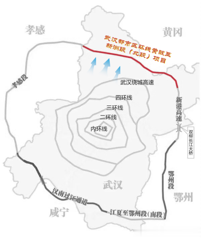 除了前面提到的六环线北段之外,武汉六环线新港高速、双柳长江大桥、汉南长江大桥及接线工程都已经开工建设。