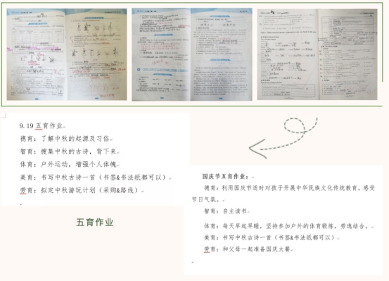 一是分好“三个层次”,即作业分为必做、选做、弹性三个层次。如:必做包含周末五育作业,劳动教育按照劳动教育清单的40条布置,德育作业如党史学习教育——《学党史、知党恩、跟党走》作业。