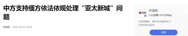 中方支持缅方依法依规处理“亚太新城”问题=环球网2020-08-25 18:39