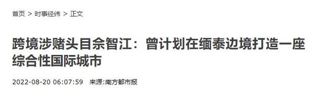 南方都市报——跨境涉赌头目佘智江:曾计划在缅泰边境打造一座综合性国际城市