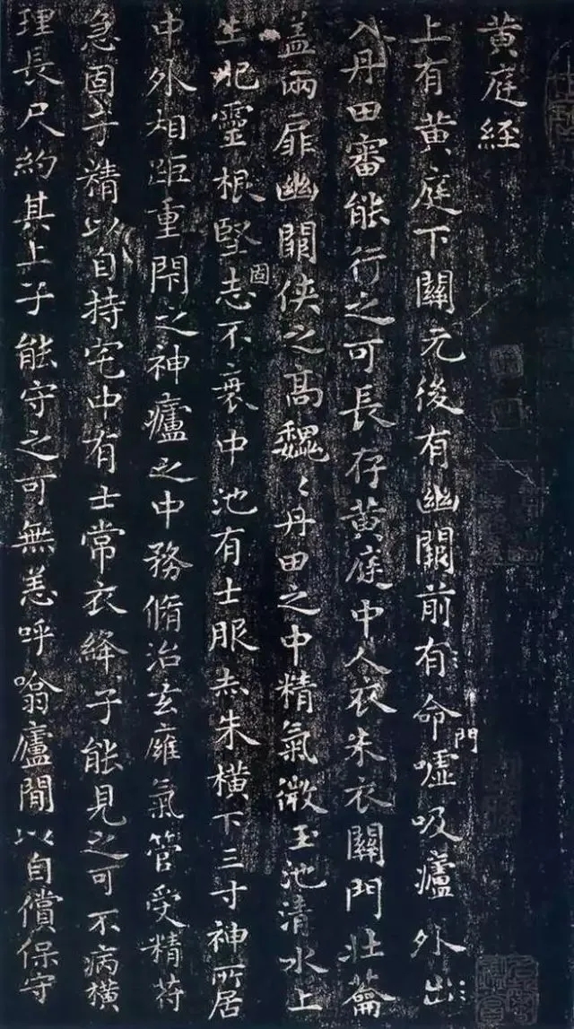 《黄庭经》,又名《老子黄庭经》,是道教养生修仙专著。王羲之曾用小楷书《黄庭经》,原本为黄素绢本,在宋代曾摹刻上石,有拓本流传。此帖其法极严,其气亦逸,有秀美开朗之意态。