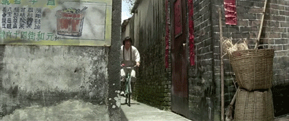 2、在成龙被人追逐的准备上楼梯时,突然楼上也下来一群人把成龙截住,成龙通常从楼梯侧栏翻跳下去,以此躲开打手们的围追堵截。潜在战术含义是,变多路围截为一路追击,继续创造痛打落单者的机会。