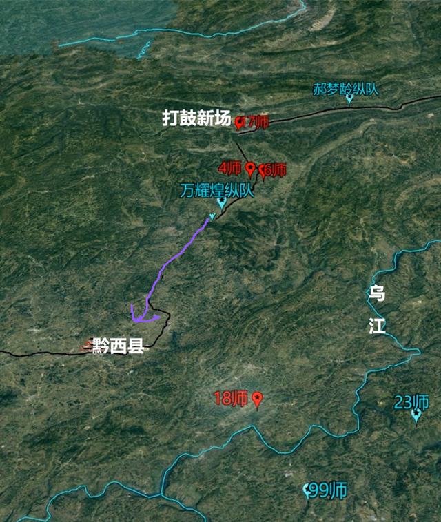 而我军在黔西县一带只有一个红18师守卫,肯定是挡不住万耀煌一个纵队的。如下图