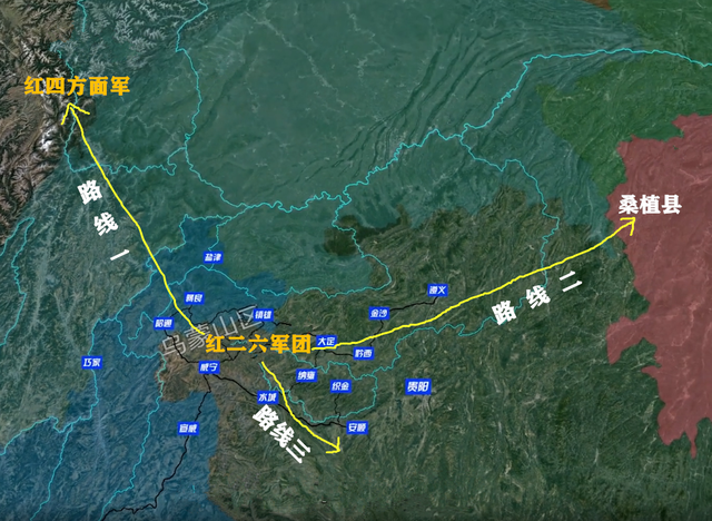 路线一是北渡金沙江,去川藏边界的甘孜会师红四方面军;