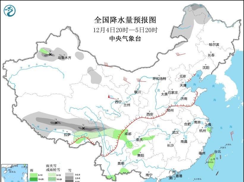 降雪方面:内蒙古东北部、黑龙江西北部、新疆沿天山地区、西藏中南部、甘肃河西、川西高原北部等地部分地区有小雪或雨夹雪分布,局地有中到大雪分布(5~9毫米)。